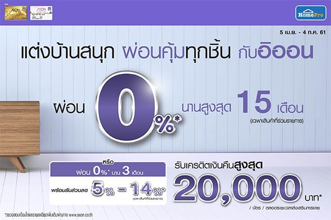 แต่งบ้านสนุก ผ่อน 0% นานสูงสุด 15 เดือน คุ้มทุกชิ้น กับอิออน ที่โฮมโปรทุกสาขา