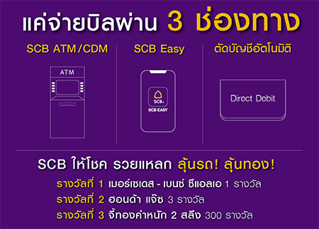 จ่ายบิล รวยฟินเวอร์ SCB ให้โชค รวยแหลก ลุ้นรถ! ลุ้นทอง! แค่จ่ายบิลผ่าน 3 ช่องทาง