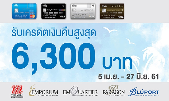 รับเครดิตเงินคืนสูงสุด 6,300 บาท เมื่อช้อปที่ห้างสรรพสินค้าในเครือเดอะมอลล์ ทุกสาขา ผ่านบัตรเครดิต TMB