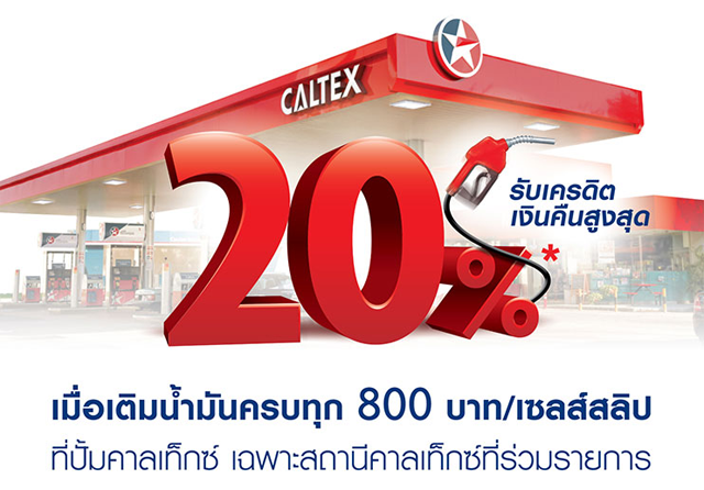 รับเครดิตเงินคืนสูงสุด 20% เมื่อเติมน้ำมันครบทุก 800 บาท/ เซลส์สลิป ที่ปั๊มคาลเท็กซ์