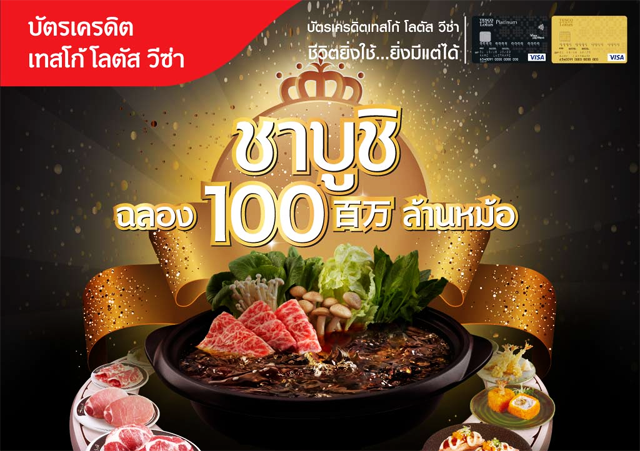 ชาบูชิ ฉลอง 100 ล้านหม้อ รับส่วนลด 15% เมื่อทานที่ร้านชาบูชิ และชำระผ่านบัตรเครดิตเทสโก้ โลตัส วีซ่า