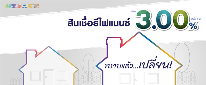 - กรณี Refinance ภายใน 3 ปี คิดค่าธรรมเนียม 3% ของภาระหนี้คงเหลือ