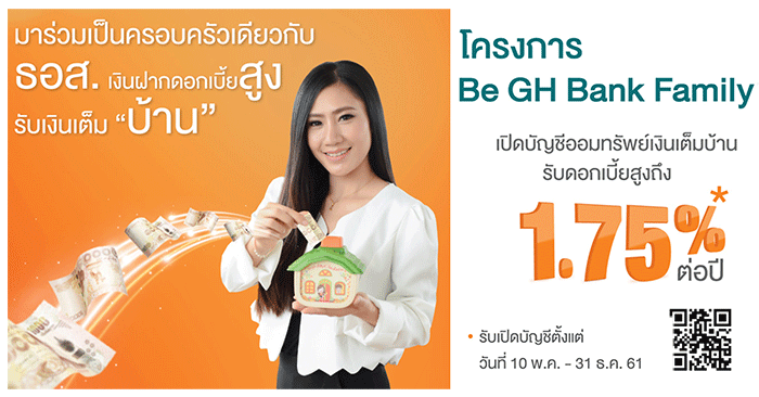 บัญชีเงินฝากออมทรัพย์เงินเต็มบ้าน โครงการ Be GH Bank Family... ธนาคารอาคารสงเคราะห์