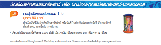 ส่งโปรโมชั่นบัญชีเงินฝากสินมัธยะทรัพย์ทวี หรือบัญชีเงินฝากสินมัธยะทรัพย์ทวี-บัวหลวงคิดส์ เปิดบัญชีเงินฝากตั้งแต่ 2,000 บาทขึ้นไป รับฟรี กระปุกบัวหลวงช่วยออม