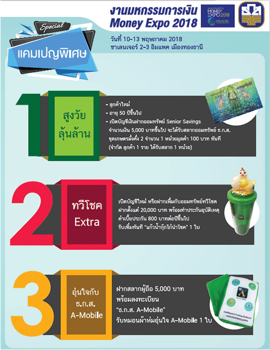 โปรโมชั่นพิเศษสำหรับทุกคน! ภายในงาน MONEY EXPO BANGKOK 2018 รับของสมนาคุณได้ทันที ทั้งลูกค้าใหม่ และลูกค้าปัจจุบัน