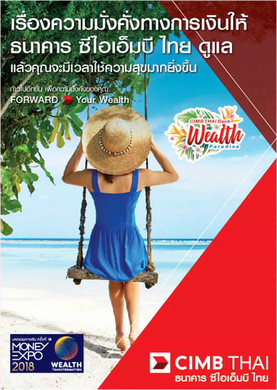 เรื่องความมั่งคั่งทางการเงินให้ธนาคาร ซีไอเอ็มบี ไทย ดูแล แล้วคุณจะมีเวลาใช้ความสุขมากยิ่งขึ้น ก้าวไปอีกขั้น เพื่อความมั่งคั่งของคุณ กับ CIMB THAI Bank Wealth Paradise
