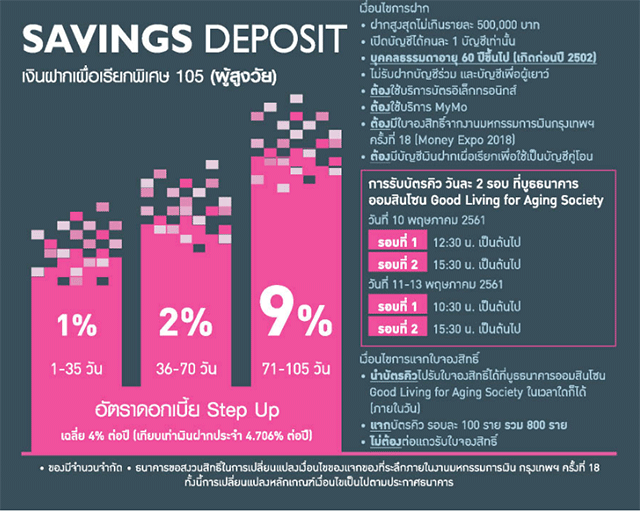 เป็นอย่างไรกันบ้างคะ มีโปรโมชั่นไหนจากธนาคารใด โดนใจกันบ้าง นี่แค่โปรโมชั่นเรียกน้ำย่อยเท่านั้นนะคะ ยังมีโปรโมชั่นสินเชื่อ บัตรเครดิต การลงทุน ที่น่าสนใจอีกมากมายเลยค่ะ นอกจากนั้นยังมีฟรีสัมมนาที่น่าสนใจอีกด้วย และปีนี้มีเพิ่มโซนใหม่ "Good Living for Aging Society" เพื่อส่งเสริมการวางแผนชีวิตและการวางแผนการเงินในระยะยาวให้คนวัยทำงานอายุ 40 ปีขึ้นไป จนถึงวัยเกษียณอายุตั้งแต่ 60-80 ปี ได้ใช้ชีวิตอย่างมีไลฟ์สไตล์และมีความสุข โซนนี้ก็น่าสนใจไม่น้อยเลยค่ะ ใครพอมีเวลารีบไปชมงานกันนะคะ งานมีแค่วันที่ 10 - 13 พฤษภาคม 2561 นี้เท่านั้น