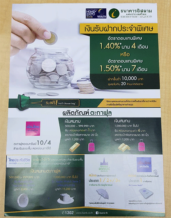 ปีนี้ธนาคารอิสลามก็มาพร้อมโปรโมชั่น และของที่ระลึกทั้งบัญชีเงินฝาก สินเชื่อ SME สินเชื่อบ้านแลกเงิน รีไฟแนนซ์ รวมไปถึงโปรโมชั่นผลิตภัณฑ์ตะกาฟุล (หรือประกันชีวิต) ที่น่าสนใจนะคะ