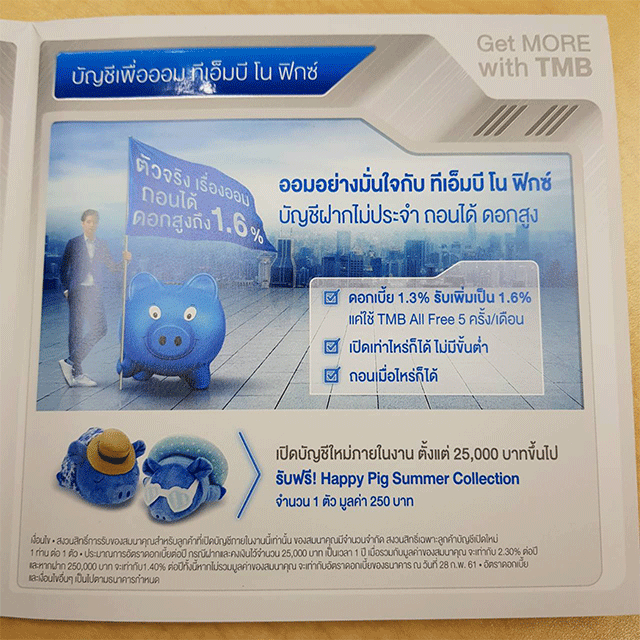 Get More With TMB เพราะคุณต้องได้มากกว่า กับ ธนาคารทหารไทย ปีนี้มาพร้อม 2 บัญชีเงินฝากโดนใจ บัญชีทีเอ็มบี ออลล์ ฟรี ที่ให้ฟรีค่าธรรมเนียมกันอย่างจุใจ และบัญชีทีเอ็มบี โน ฟิกซ์ ที่เปิดบัญชีเท่าไหร่ก็ได้ ให้ดอกเบี้ยสูง 1.30% ตั้งแต่บาทแรก และสามารถถอนเมื่อไหร่ก็ได้ พร้อมรับของสมนาคุณน่าสนใจเพียบ มีอะไรบ้างไปดูกันเลย...