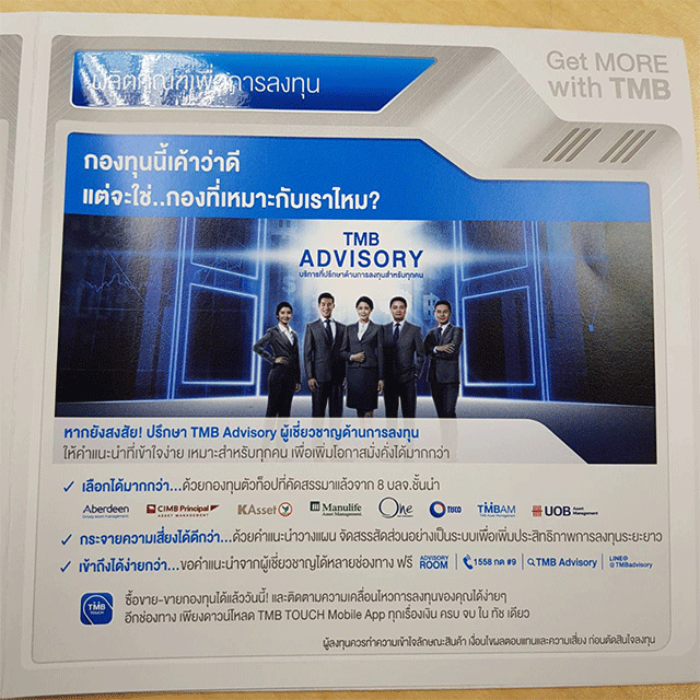 1. ที่ปรึกษาทางการเงินธนาคารกสิกรไทย ให้คำแนะนำ เรื่องการลงทุน ภาษี เกษียณ และความคุ้มครอง พิเศษ ปรึกษาภายในงานรับฟรี แผ่นรองเม้าท์