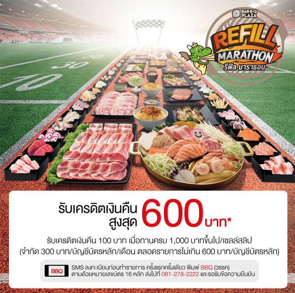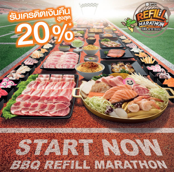 รายละเอียดโปรโมชั่น : อิ่มแบบมาราธอน รับเครดิตเงินคืนรวมสูงสุด 23% ที่ Bar-B-Q Plaza