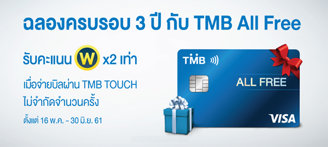 ฉลองครบรอบ 3 ปี กับ TMB All Free รับคะแนน TMB WOW 2 เท่า