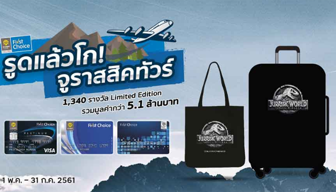 สมัครบัตรกรุงศรีเฟิร์สช้อยส์ "รูดแล้วโก" จูราสสิคทัวร์ที่ญี่ปุ่น พร้อมรับกระเป๋า Jurassic World