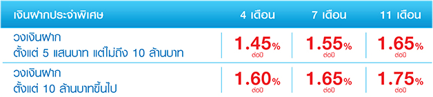 บัญชีเงินฝากประจำพิเศษ จากธนาคารทิสโก้ สำหรับลูกค้าบุคคลธรรมดาเท่านั้น มี 3 ช่วงระยะเวลาให้เลือกฝาก คือ 4 เดือน 7 เดือน และ 11 เดือน