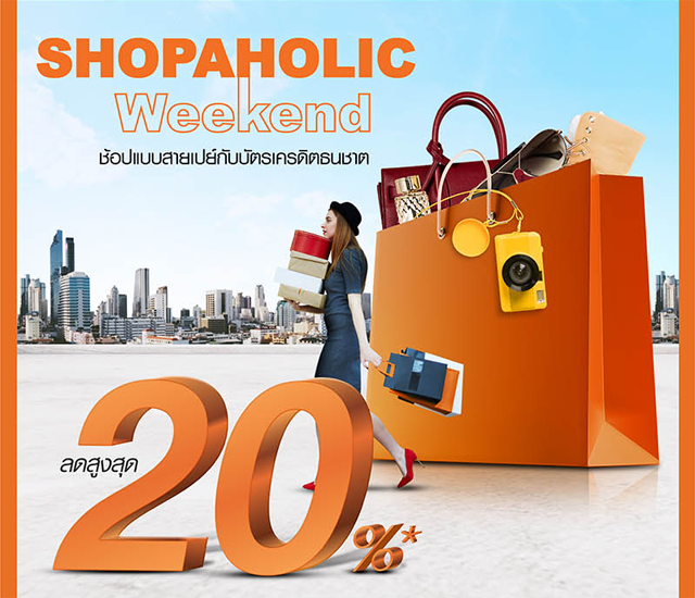 Shopaholic Weekend... ช้อปแบบสายเปย์กับบัตรเครดิตธนชาต รับส่วนลดสูงสุด 20% เมื่อมียอดใช้จ่ายตั้งแต่ 1,000 บาทขึ้นไป/ เซลล์สลิป ณ ห้างสรรพสินค้าในเครือเดอะมอลล์ ทุกสาขา, เอ็มโพเรียม, เอ็มควอเทียร์, พารากอน และบลูพอร์ต และใช้คะแนนเท่ายอดซื้อแลกส่วนลด
