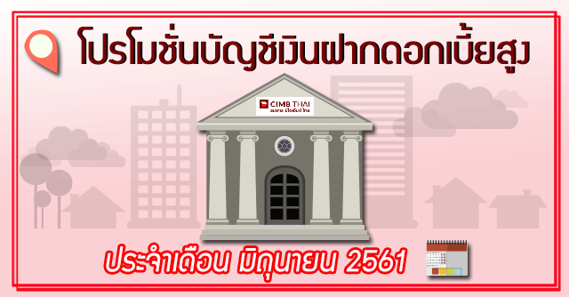 โปรโมชั่นบัญชีเงินฝากดอกเบี้ยสูงประจำเดือนมิถุนายน 2561 จากธนาคารซีไอเอ็มบี ไทย บัญชีเงินฝากประจำแบบมีกำหนดระยะเวลาที่ให้ดอกเบี้ยสูง และสามารถเลือกรับดอกเบี้ยแบบรายเดือน หรือเมื่อครบกำหนดได้