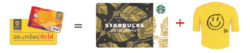 ฟิ้วที่ 1 : เปิดบัญชีเงินฝากกรุงศรีออมทรัพย์จัดให้ และสมัครบัตรกรุงศรี เดบิต ออมทรัพย์จัดให้ในงาน รับฟรี บัตรกำนัลสตาร์บัคส์ 1 ใบ มูลค่า 100 บาท และเสื้อ Limited Edition ออกแบบโดยคุณเมื่อย scrubb (จำกัด 100 ท่าแรก/วัน)*