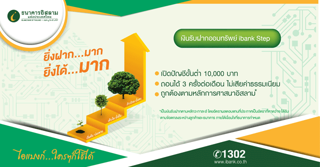 ยิ่งฝากมาก ยิ่งได้มาก กับเงินฝากออมทรัพย์ ibank Step จากธนาคารอิสลาม ผลตอบแทนที่คาดว่าจะได้รับสูงสุด 1.20% ต่อปี