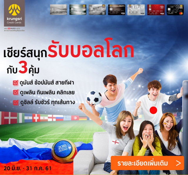 เชียร์สนุก รับบอลโลกกับ 3 คุ้ม ให้คุณ ดูมันส์ ดูเพลิน ดูชิลล์.. สิทธิพิเศษจากบัตรเครดิตกรุงศรี