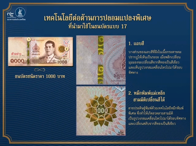 *สำหรับลักษณะต่อต้านการปลอมแปลงอื่นๆ ของธนบัตรยังคงไว้เช่นเดิม