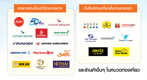 เงื่อนไขรายการส่งเสริมการขาย - ธนาคารฯ ขอสงวนสิทธิ์การให้คะแนนสะสมพิเศษเพิ่ม เฉพาะสมาชิกบัตรเครดิตที่มียอดการใช้จ่ายผ่านบัตรฯ ในหมวดท่องเที่ยว (โรงแรม-ที่พัก/ สายการบิน/ ทัวร์) ตาม MCC Code ที่ระบุโดย VISA และ Master Card เท่านั้น และเป็นสกุลเงินบาทไทยเท่านั้น