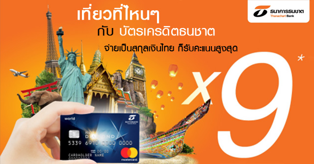 เที่ยวที่ไหนๆ ก็คุ้ม! รับคะแนนสะสมรวมสูงสุด X9 เมื่อใช้จ่ายในหมวดท่องเที่ยว ผ่านบัตรเครดิตธนชาต