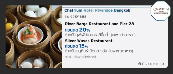 รายละเอียดโปรโมชั่นส่วนลด ณ ร้านอาหารชั้นนำ ที่ร่วมรายการ