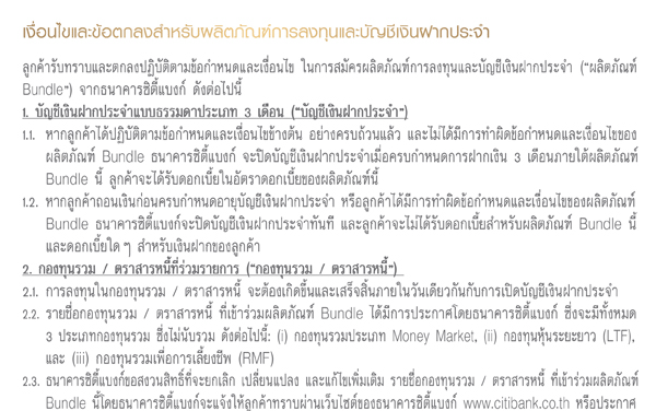 สิทธิพิเศษสำหรับลูกค้าซิตี้โกลด์ รับอัตราดอกเบี้ยเงินฝากประจำพิเศษ 2%* เพียงลงทุนในกองทุนรวมประเภท non-money market หรือตราสารหนี้ที่ธนาคารซิตี้แบงก์กำหนด และบัญชีเงินฝากประจำแบบธรรมดาประเภท 3 เดือน