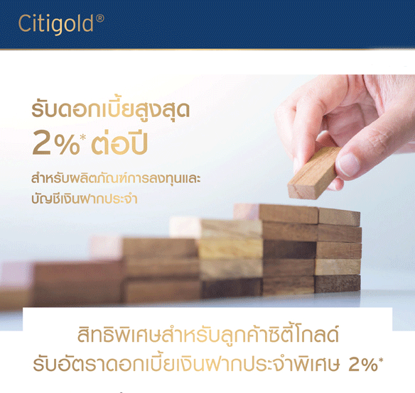สิทธิพิเศษสำหรับลูกค้าซิตี้โกลด์ รับอัตราดอกเบี้ยเงินฝากประจำพิเศษ 2%*