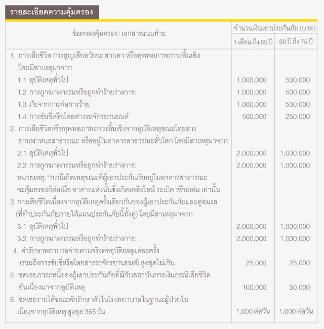 - *ความคุ้มครองและสิทธิประโยชน์เป็นไปตามที่กำหนดไว้ในกรมธรรม์ประกันภัย