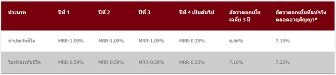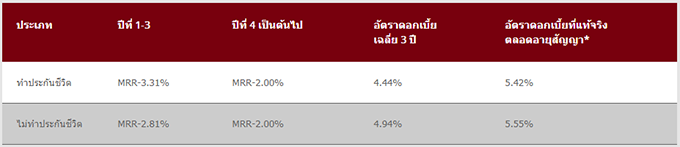 หมายเหตุ - อัตราดอกเบี้ยที่แท้จริงข้างต้นเป็นเพียงตัวอย่างที่ใช้ในการคำนวณจากวงเงิน 2 ล้านบาท ระยะเวลากู้ 10 ปี