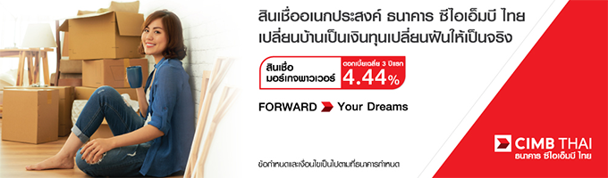 สินเชื่อมอร์เกจพาวเวอร์ ดอกเบี้ยเฉลี่ย 3 ปีแรก 4.44% เปลี่ยนบ้านเป็นเงินทุน จาก ซีไอเอ็มบี ไทย