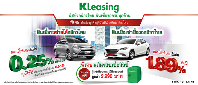 สินเชื่อรถครบทุกด้าน พิเศษ! สำหรับลูกค้าผู้มีบัญชีเงินเดือนกสิกรไทย ถึง 31 ธ.ค. 61