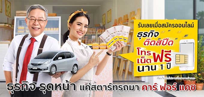 พิเศษ!! เฉพาะลูกค้าที่สมัครสินเชื่อผ่านช่องทางออนไลน์ รับฟรี ซิม คาร์ ฟอร์ แคช อินเตอร์เน็ตไม่อั้น พร้อมโทรฟรีในเครือข่าย เอไอเอส ให้ใช้ฟรีนาน 1 ปี มูลค่า 1,926 บาท
