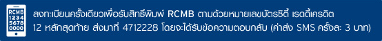เงื่อนไข - เฉพาะสมาชิกซิตี้ เรดดี้เครดิตเท่านั้น และลงทะเบียนเข้าร่วมรายการโดยส่ง SMS พิมพ์รหัส RCMB ตามด้วยเลขบัตรซิตี้ เรดดี้เครดิต 12 หลักสุดท้าย โดยไม่เว้นวรรคระหว่างรหัสและเลข (RCMBXXXXXXXXXXXX) ส่งเข้ามาที่ 4712228 (ค่าส่ง SMS ครั้งละ 3 บาท) เพียงครั้งเดียว ภายในระยะเวลาโปรแกรม