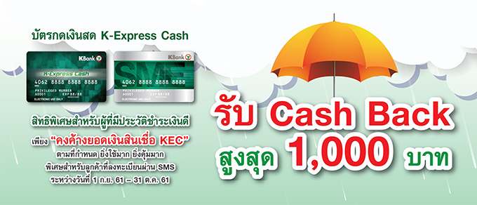 รับ Cash Back สูงสุด 1,000 บาท สิทธิพิเศษสำหรับบัตรกดเงินสด K-Express Cash วันนี้ - 31 ต.ค. 61