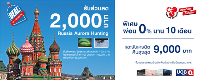 บัตรฯ UOB ชวนล่าแสงเหนือรัสเซีย ไปกับ Quality Express รับส่วนลด 2,000 บาท พร้อมผ่อน 0% 10 เดือน