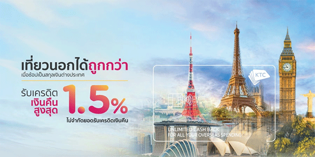 เที่ยวนอกถูกกว่า กับบัตรเครดิต KTC รับเครดิตเงินคืนสูงสุด 1.5% เมื่อช้อปเป็นเงินสกุลต่างประเทศ