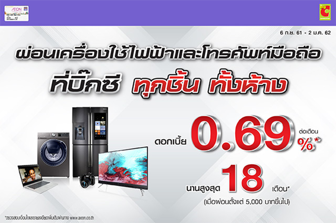 ผ่อนเครื่องใช้ไฟฟ้า โทรศัพท์มือถือและ ไอที เพียง0.69 % ที่บิ๊กซี