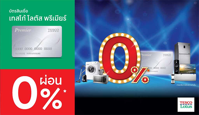 เลือกผ่อนเครื่องใช้ไฟฟ้า 0% ผ่านบัตรสินเชื่อเทสโก้ โลตัส พรีเมียร์ ที่เทสโก้ โลตัส