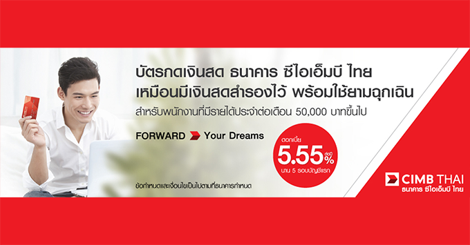 ข้อกำหนดและเงื่อนไขสิทธิพิเศษนี้เฉพาะลูกค้าใหม่ ที่สมัครบัตรสินเชื่อบุคคลเอ็กซ์ตร้าแคช ของ ธนาคาร ซีไอเอ็มบี ไทย จำกัด (มหาชน) ตั้งแต่ 1 ตุลาคม - 31 ธันวาคม 2561