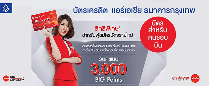 สมัครและใช้จ่ายผ่านบัตรเครดิตแอร์เอเชีย วันนี้ รับ BIG Points 3,000 คะแนน