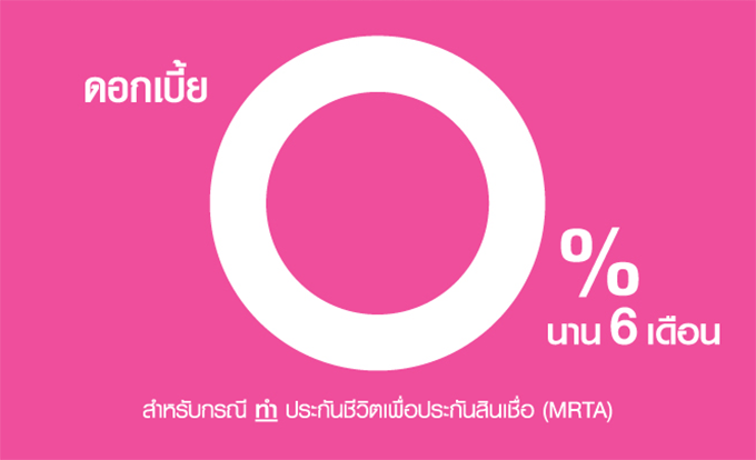 ดอกเบี้ย 0% นาน 6 เดือน สำหรับกรณี ทำ ประกันชีวิตเพื่อประกันสินเชื่อ (MRTA)