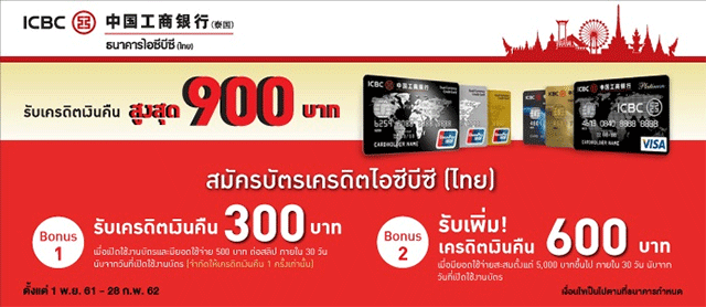 บัตรเครดิตไอซีบีซี (ไทย) วันนี้ รับเครดิตเงินคืนสูงสุด 900 บาท