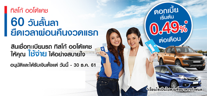ทิสโก้ ออโต้แคช 60 วันลั้นลา ยืดเวลาผ่อนคืนงวดแรก