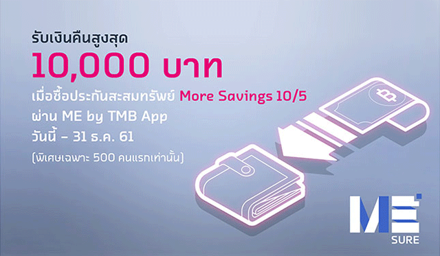 ซื้อประกัน ME SURE ผ่าน ME by TMB App รับเงินคืนสูงสุด 10,000 บาท