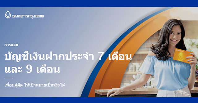 โปรโมชั่น บัญชีเงินฝากประจำ 7 เดือน และ 9 เดือน จาก ธ.กรุงเทพ ให้คุณรับดอกเบี้ยสูงพิเศษ