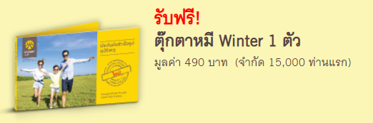 ซื้อประกันอุบัติเหตุ กรุงศรี พีเอ ดี พร้อม วันนี้ รับฟรี! ตุ๊กตาหมี Winter 1 ตัว มูลค่า 490 บาท