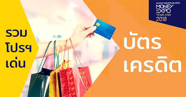 งานมหกรรมการเงินส่งท้ายปี ครั้งที่ 2 (Money Expo Year-End 2018) ได้มีโปรโมชั่นด้านบัตรเครดิตมากมาย จากหลายสถาบันการเงิน บทความนี้จึงได้รวมโปรโมชั่น "บัตรเครดิต" เอาไว้เพื่อให้ง่ายต่อการตัดสินใจแก่ผู้ที่สนใจจะทำบัตรเครดิต