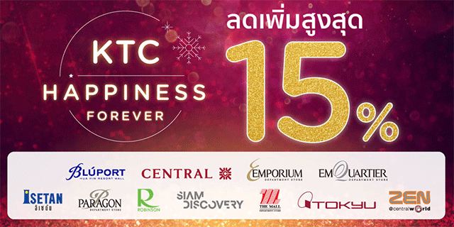 KTC Happiness Forever แลกช้อปคุ้ม ลดเพิ่มทุกวัน ลดเพิ่มสูงสุด 15%